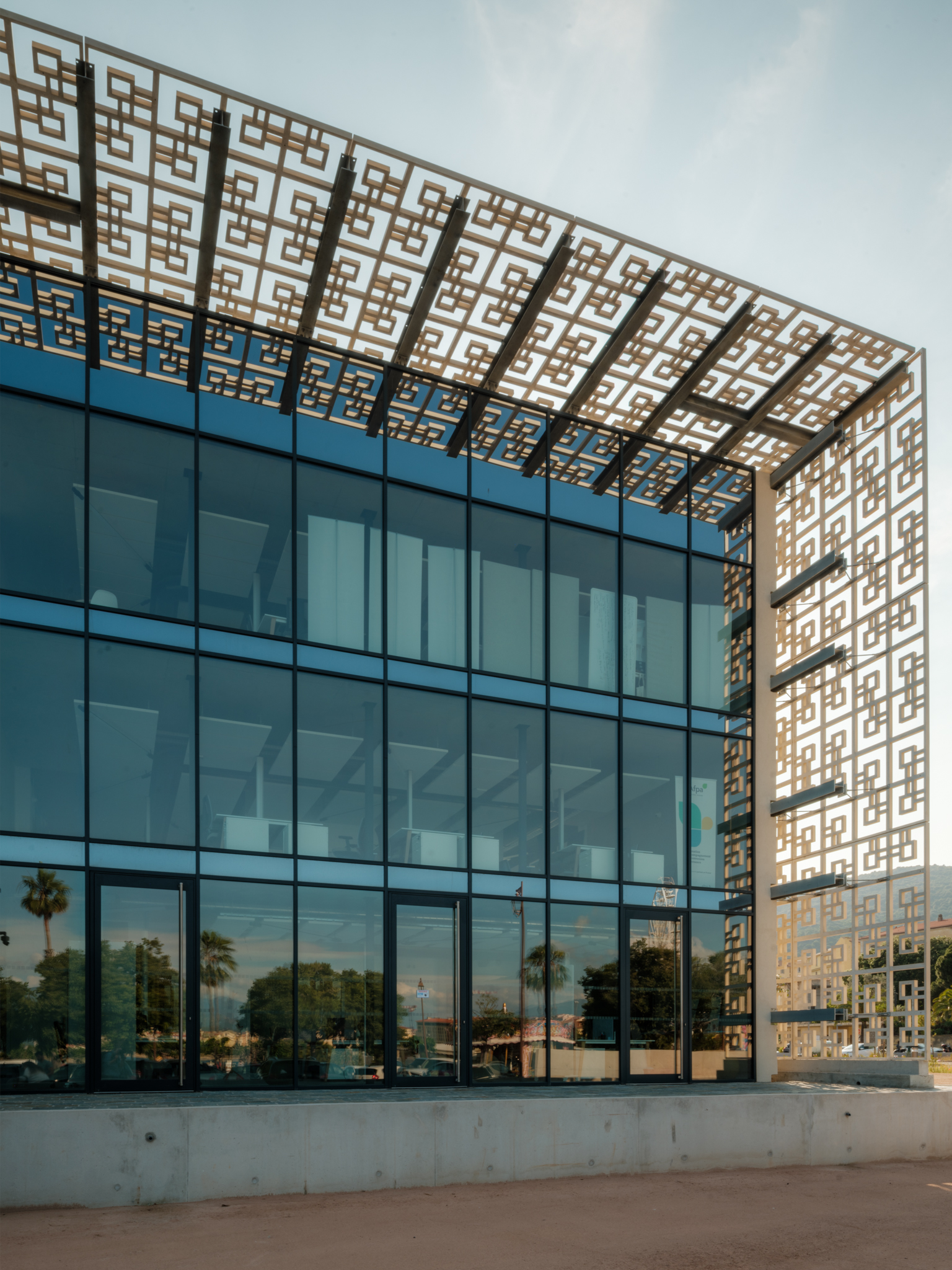 bâtiment principal. Cette résille sera désolidarisée du sol afin d’alléger visuellement
